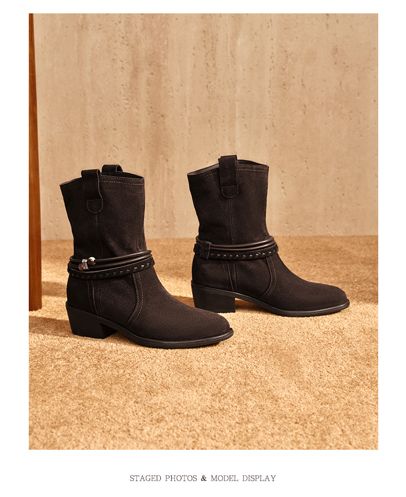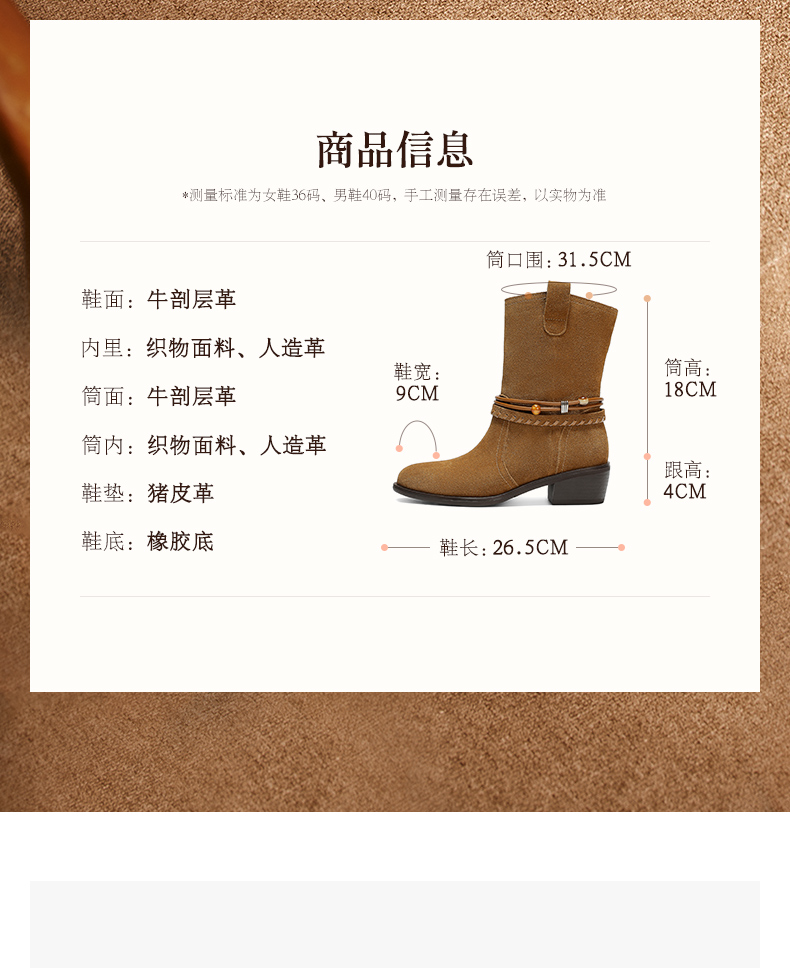 | 配跟:无 | 靴筒口围:31.5CM | 上市时间:2025年冬季 | 鞋类流行款式:中靴 | 鞋头款式:圆头 |