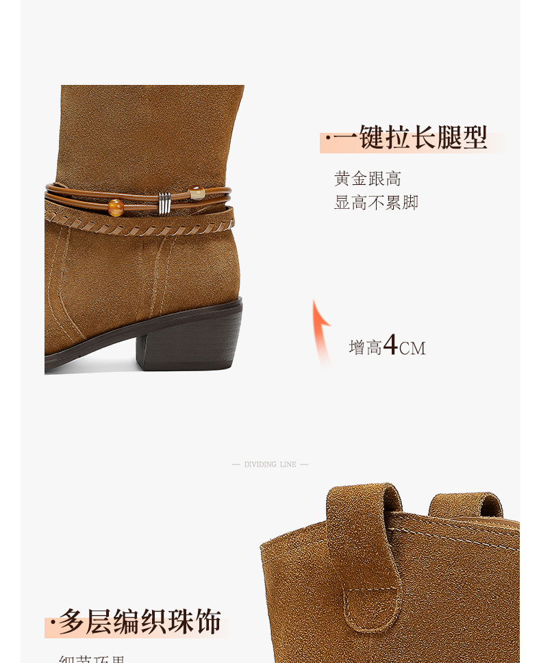 | 风格:休闲 | 色系:咖啡色 | 跟高数值:4CM | 性别:女子 | 筒高数值:18CM |