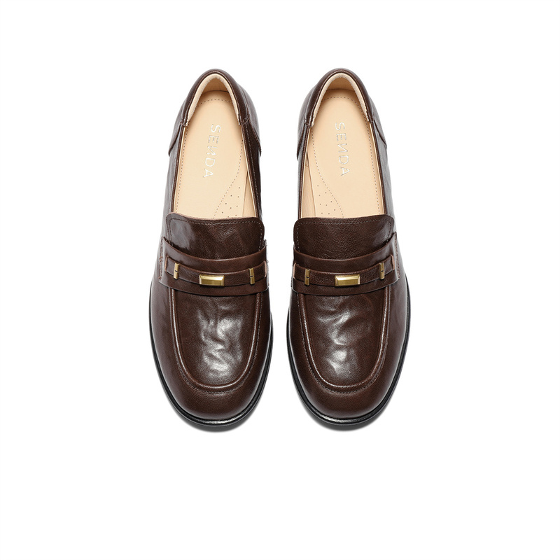 | 色系:咖啡色 | 跟高数值:4.5CM | 性别:女子 | 里料材质:人造革猪皮革 | 制鞋工艺:胶贴皮鞋 |