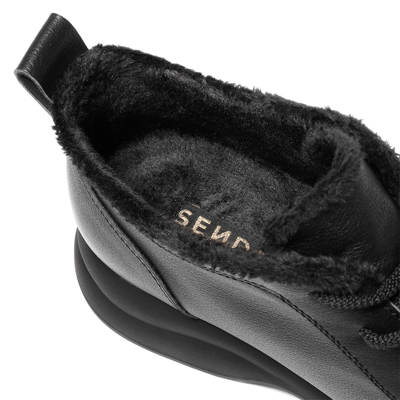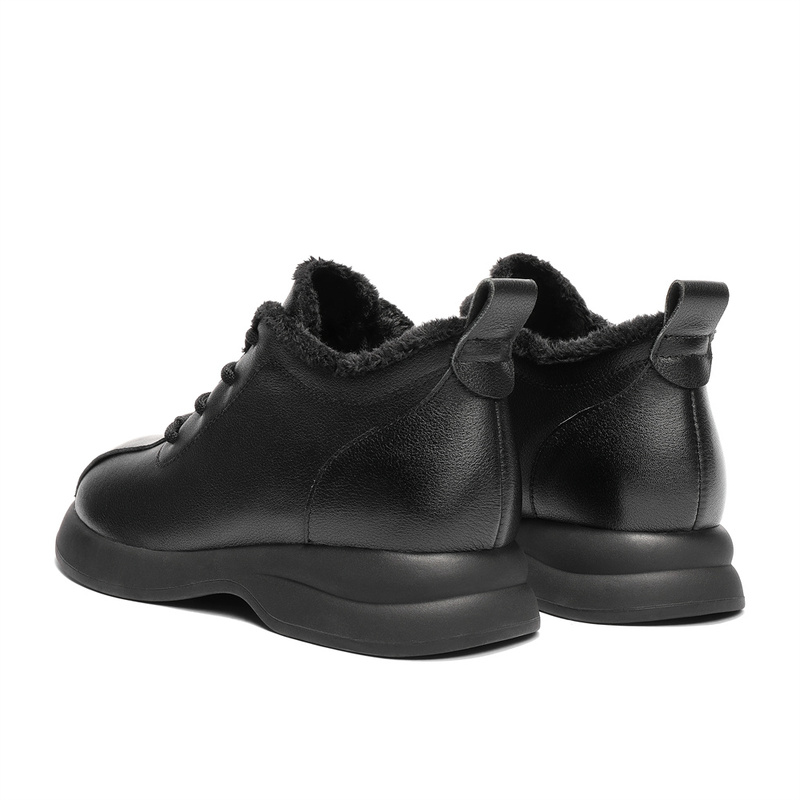 | 色系:黑色 | 跟高数值:3CM | 性别:女子 | 里料材质:人造短毛绒 | 制鞋工艺:胶贴皮鞋 |