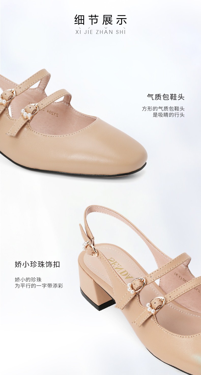 | 鞋头款式:圆头 | 鞋底材质:橡胶底 | 鞋面图案:纯色 | 鞋跟形状:粗跟 | 鞋面材质:羊皮革 |