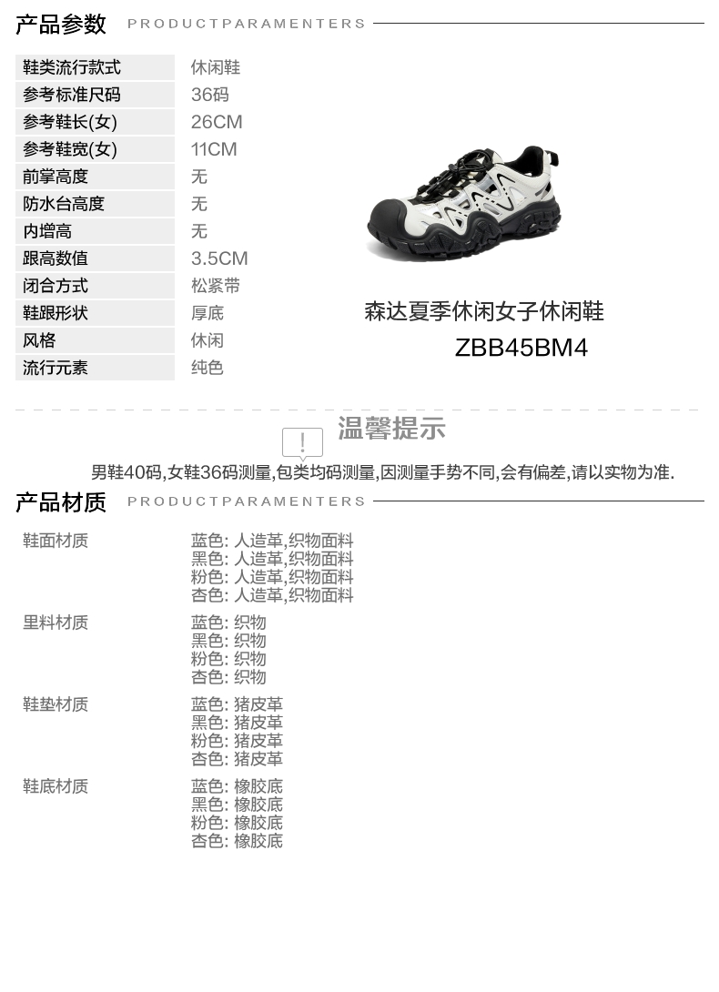| 鞋跟形状:厚底 | 参考鞋长(女):26CM | 流行元素:纯色 | 参考鞋宽(女):11CM | 风格:休闲 |