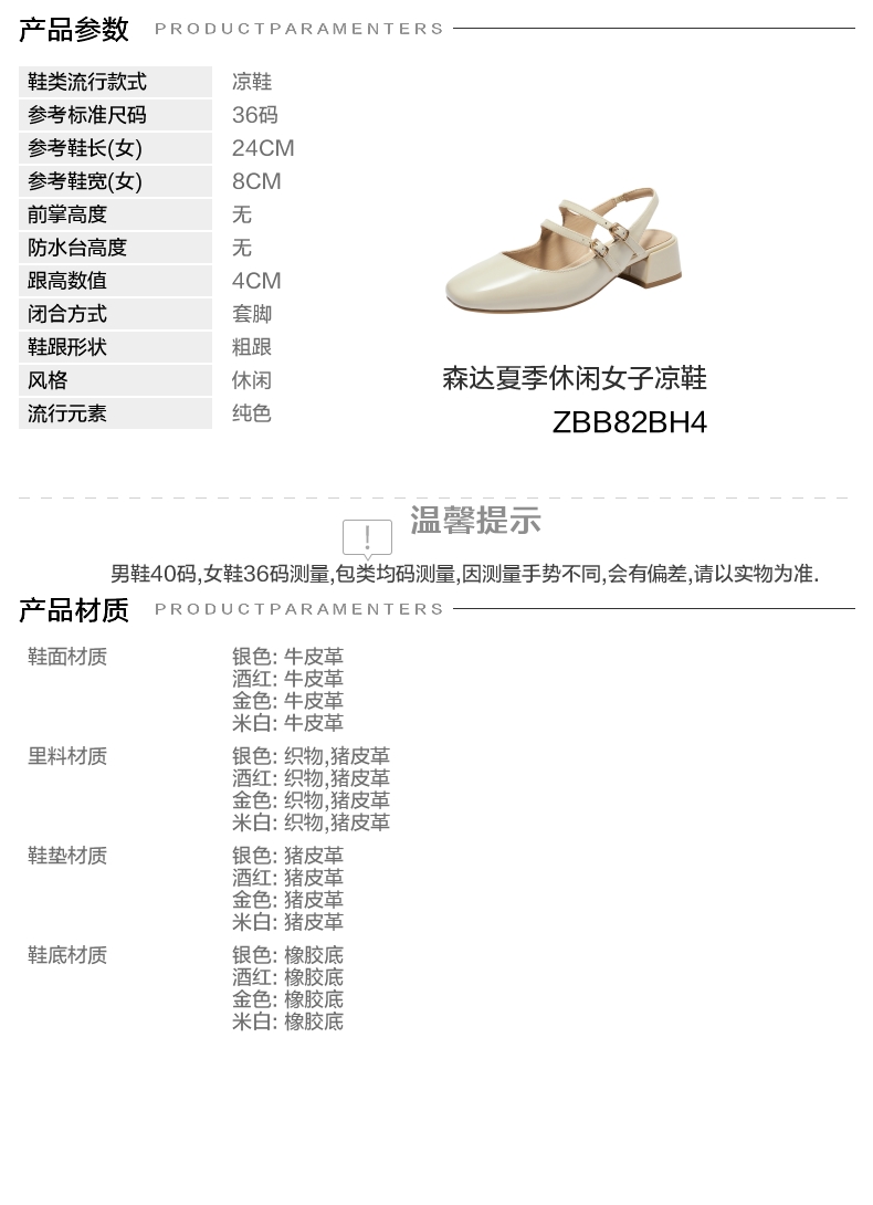 | 皮质特征:牛皮革 | 销售季:2024年夏季 | 防水台高度:无 |