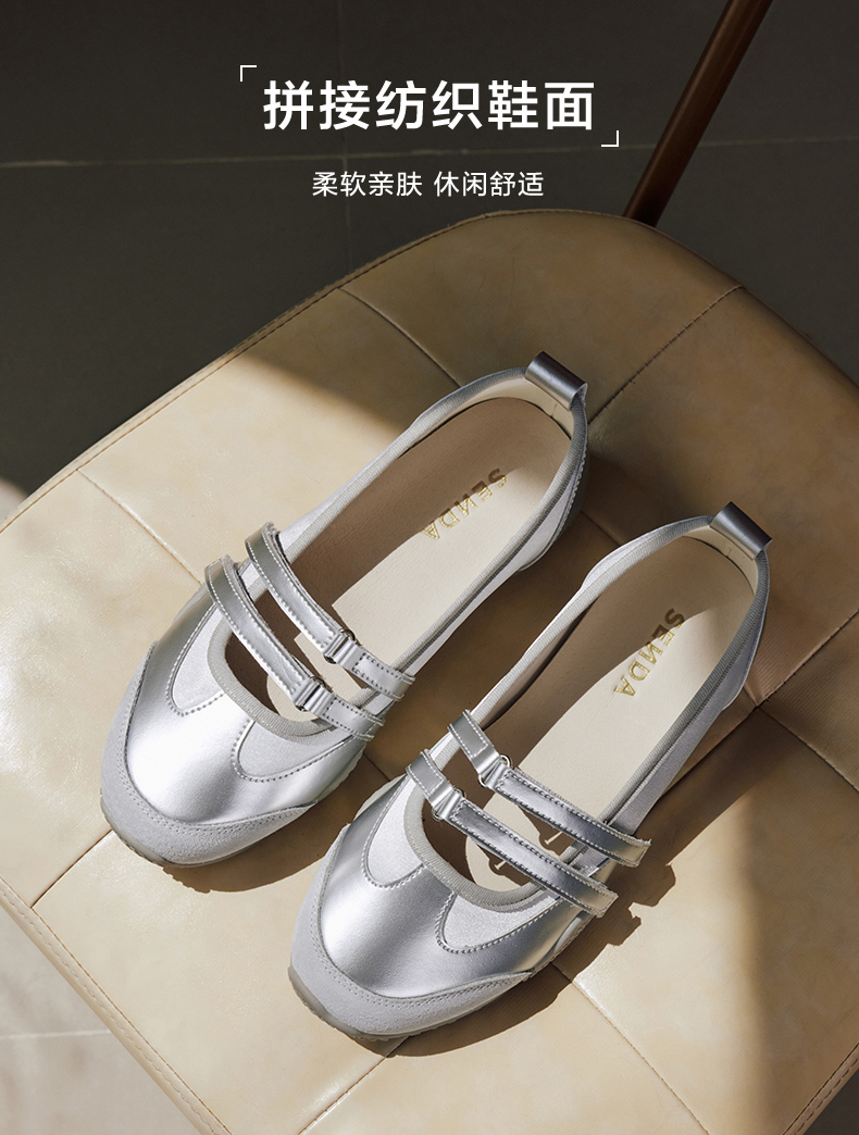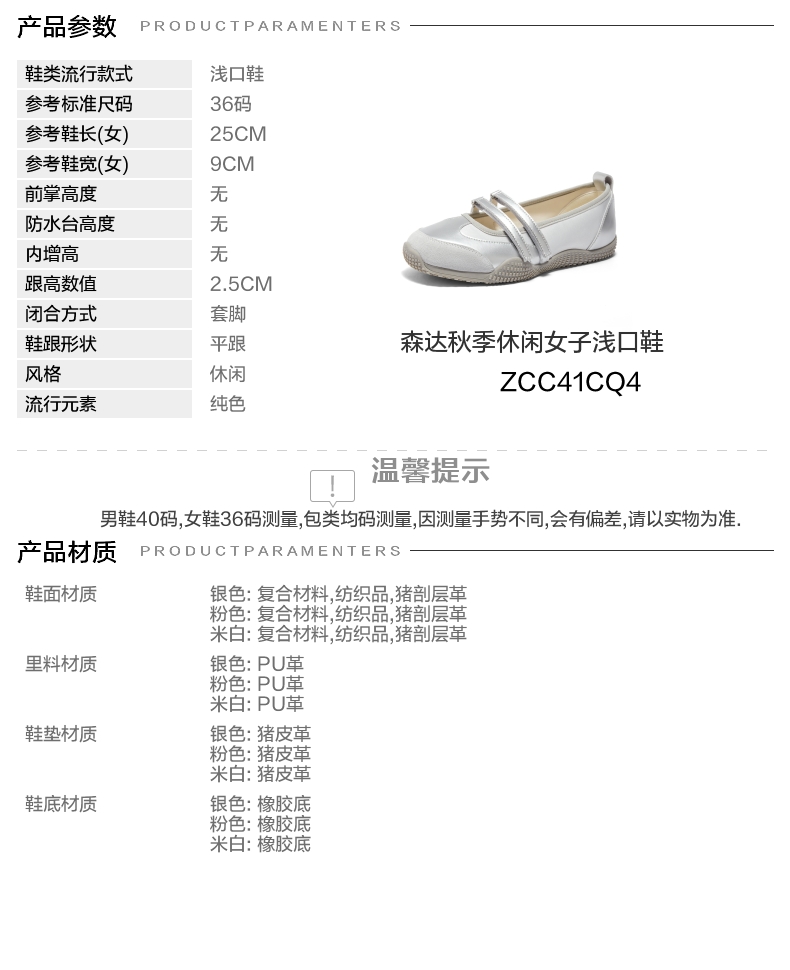 | 风格:休闲 | 跟高数值:2.5CM | 色系:银色 | 配跟:无 | 性别:女子 |