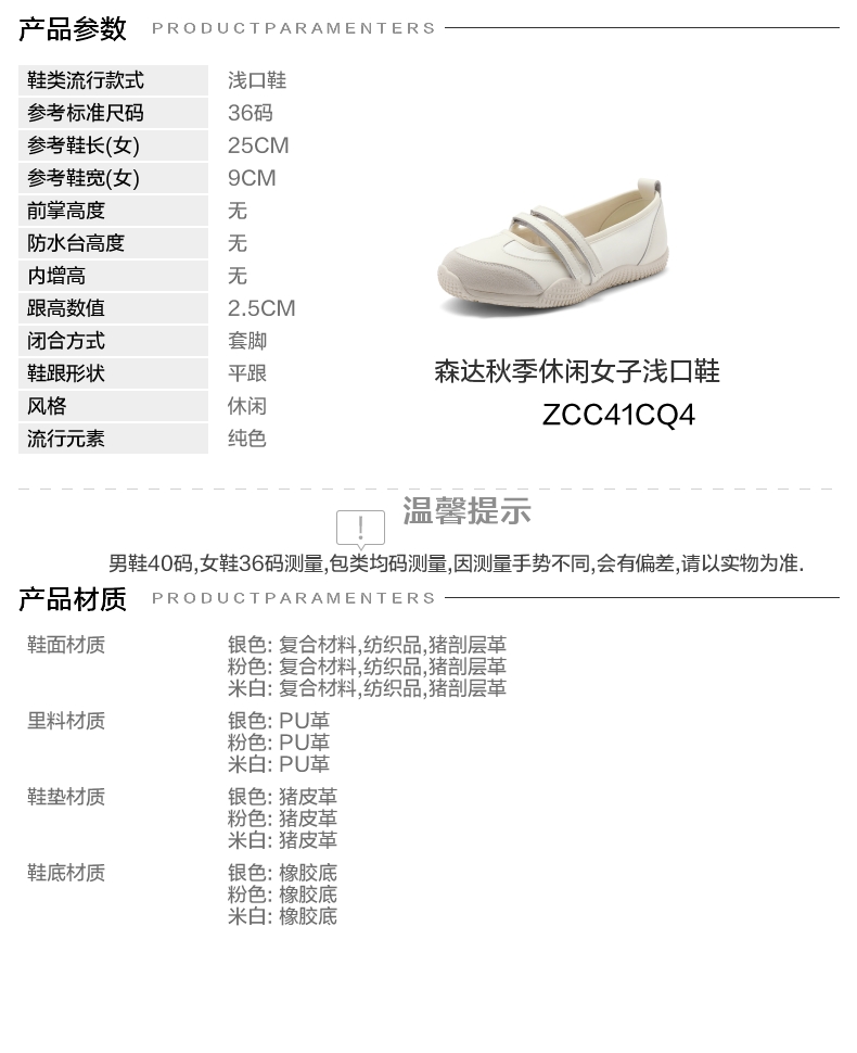 | 风格:休闲 | 跟高数值:2.5CM | 色系:米白 | 配跟:无 | 性别:女子 |
