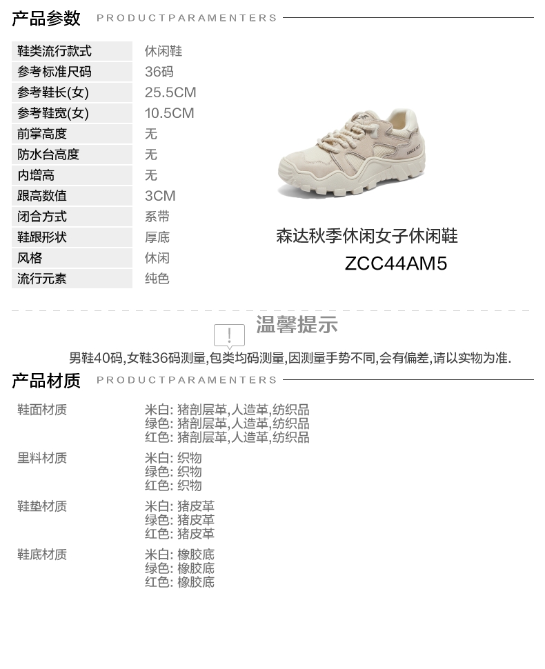 | 上市时间:2025年春季 | 生产/经销/进口厂家:江苏新森达鞋业有限公司 | 鞋类流行款式:休闲鞋 | 鞋头款式:圆头 | 执行标准:舒适运动鞋 Q/320925XSD 002-2023 |