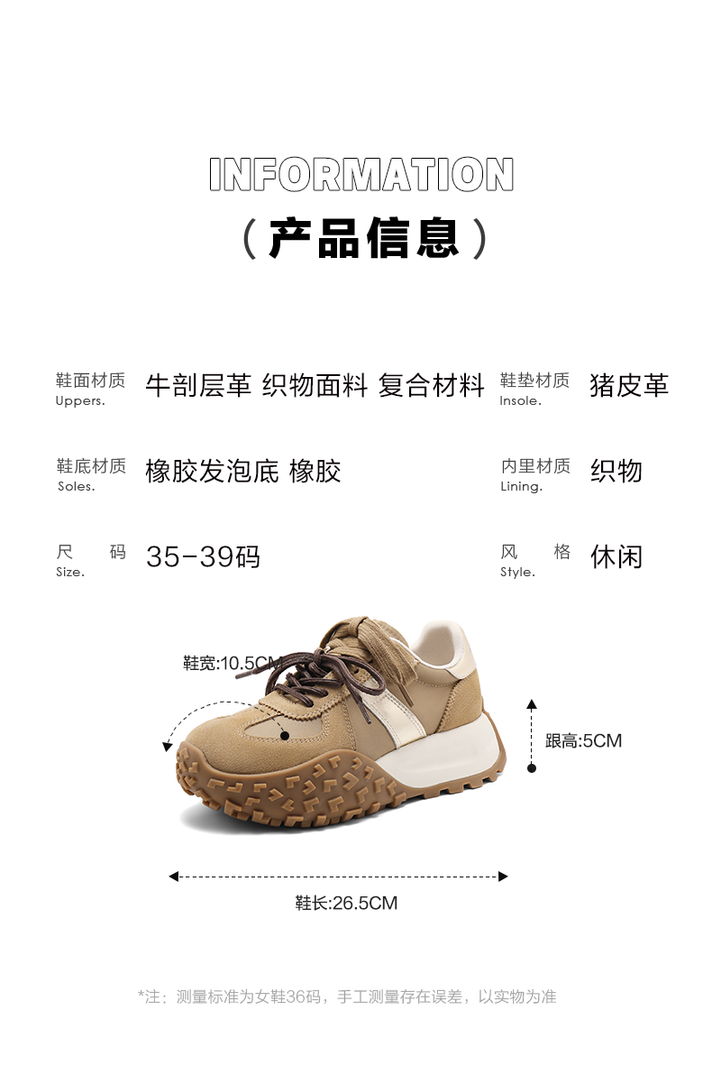 | 参考鞋长(女):26.5CM | 参考鞋宽(女):10.5CM | 风格:休闲 | 色系:白色 | 参考标准尺码:36码 |