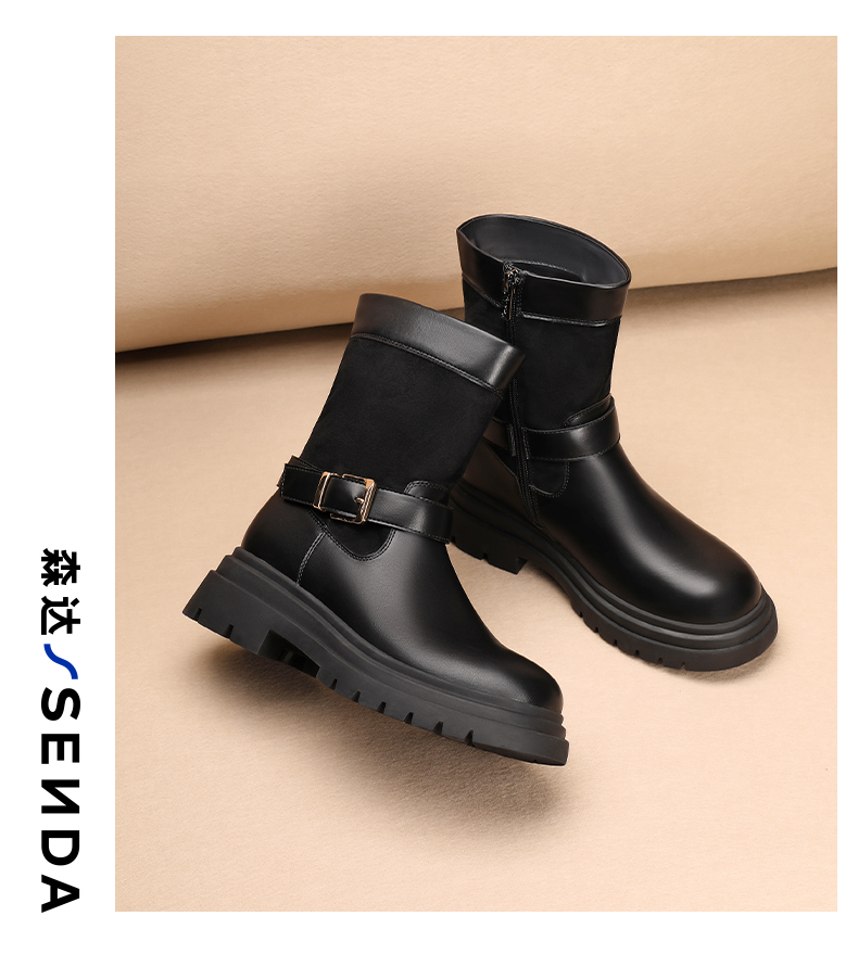 | 鞋底材质:橡胶底 | 靴筒内里材质:织物面料人造革 | 内增高:无 | 鞋面材质:复合材料牛剖层皮革 | 闭合方式:侧拉链 |