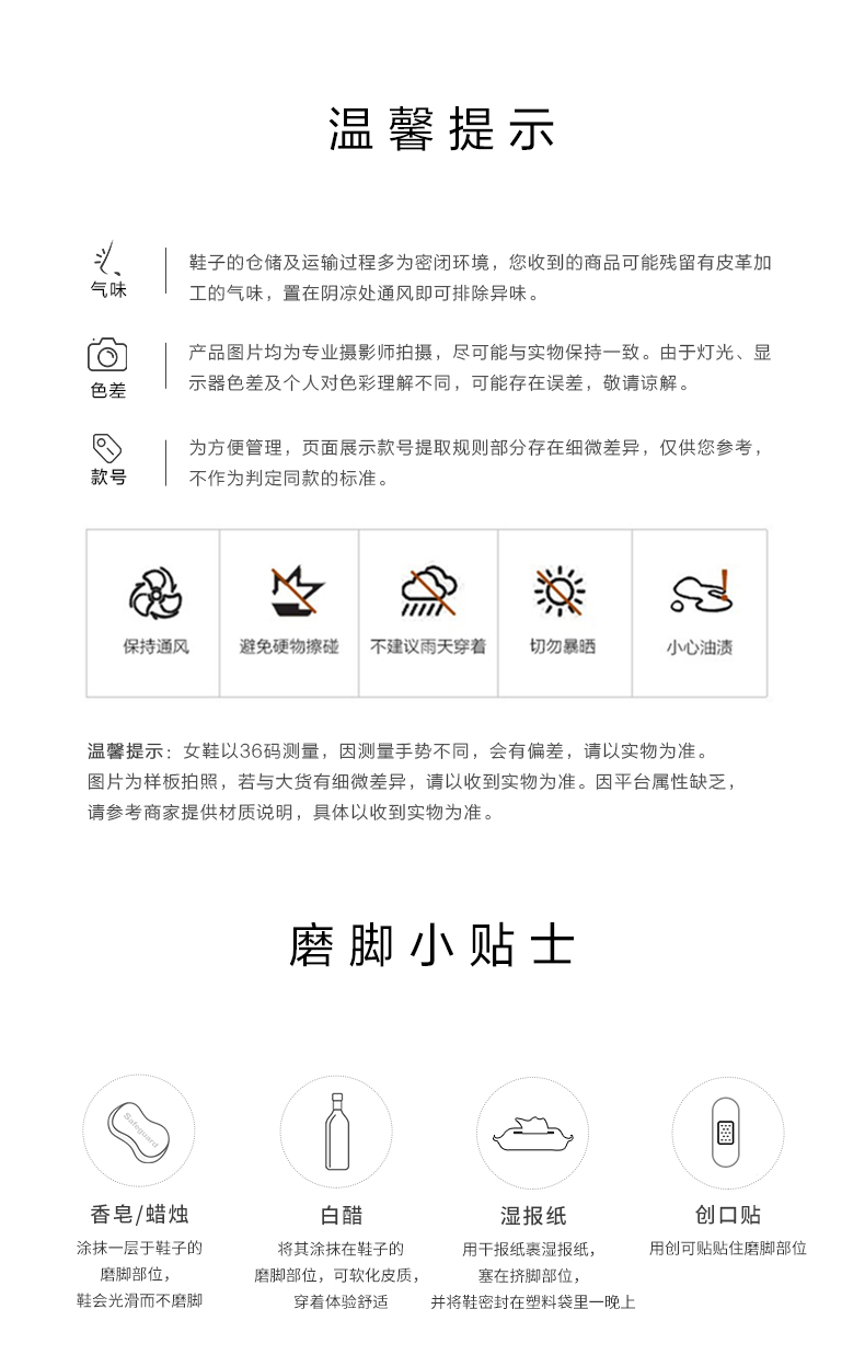 | 性别:女子 | 靴筒筒面材质:牛剖层皮革复合材料 | 里料材质:人造革织物面料 | 制鞋工艺:胶贴皮鞋 | 鞋垫材质:猪皮革 |