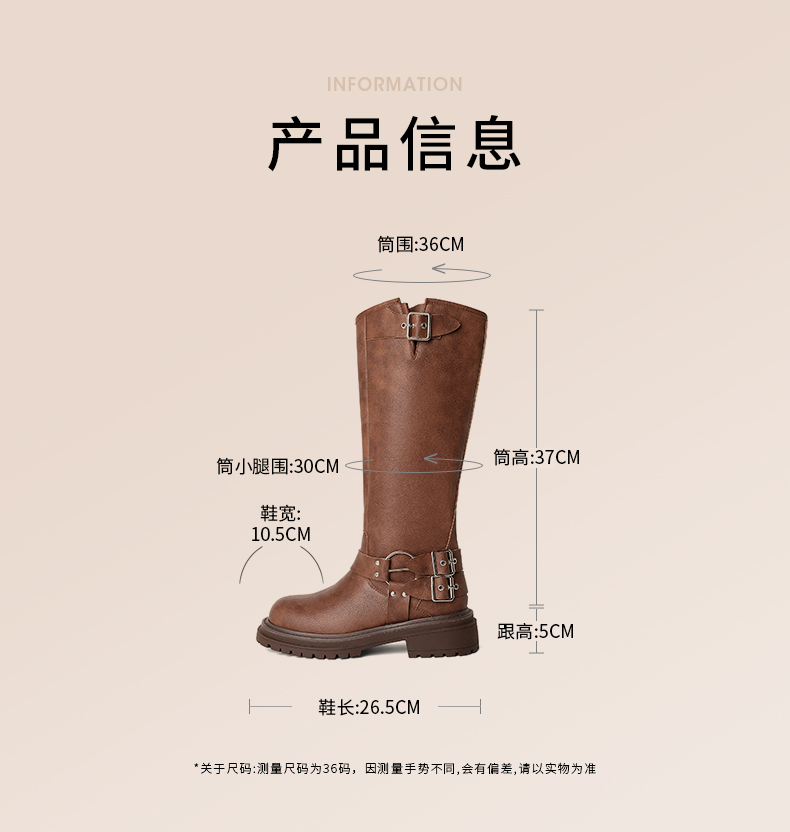 | 色系:棕色 | 跟高数值:5CM | 性别:女子 | 筒高数值:37CM | 靴筒筒面材质:人造革 |