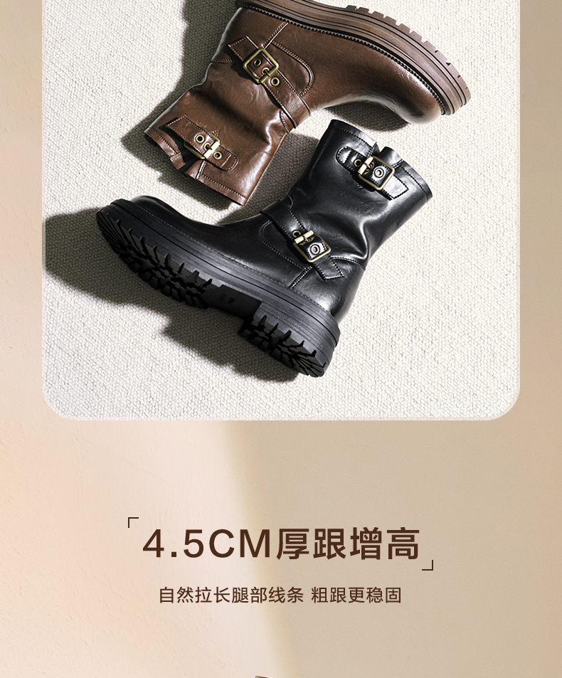 | 风格:休闲 | 色系:黑色 | 跟高数值:4.5CM | 性别:女子 | 筒高数值:18.5CM |