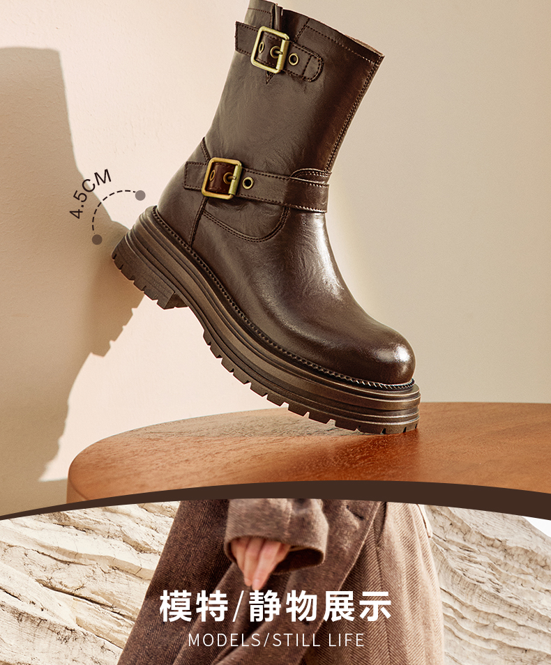 | 风格:休闲 | 色系:棕色 | 跟高数值:4.5CM | 性别:女子 | 筒高数值:18.5CM |