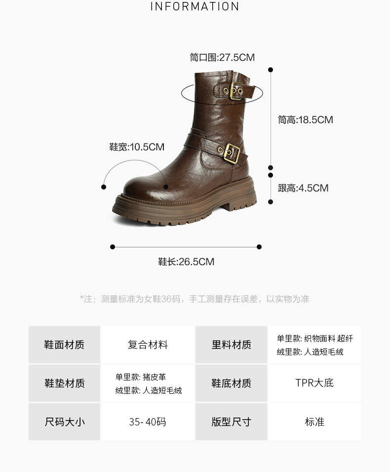 | 配跟:无 | 靴筒口围:27.5CM | 上市时间:2024年冬季 | 鞋类流行款式:中靴 | 鞋头款式:圆头 |