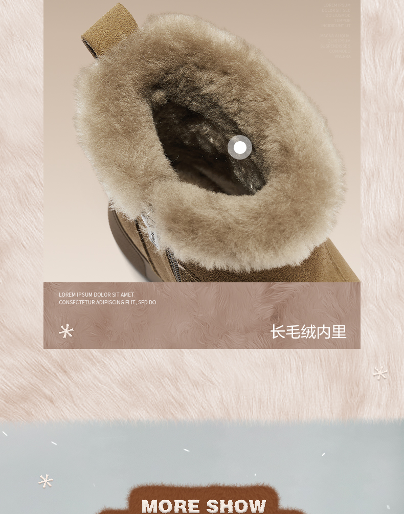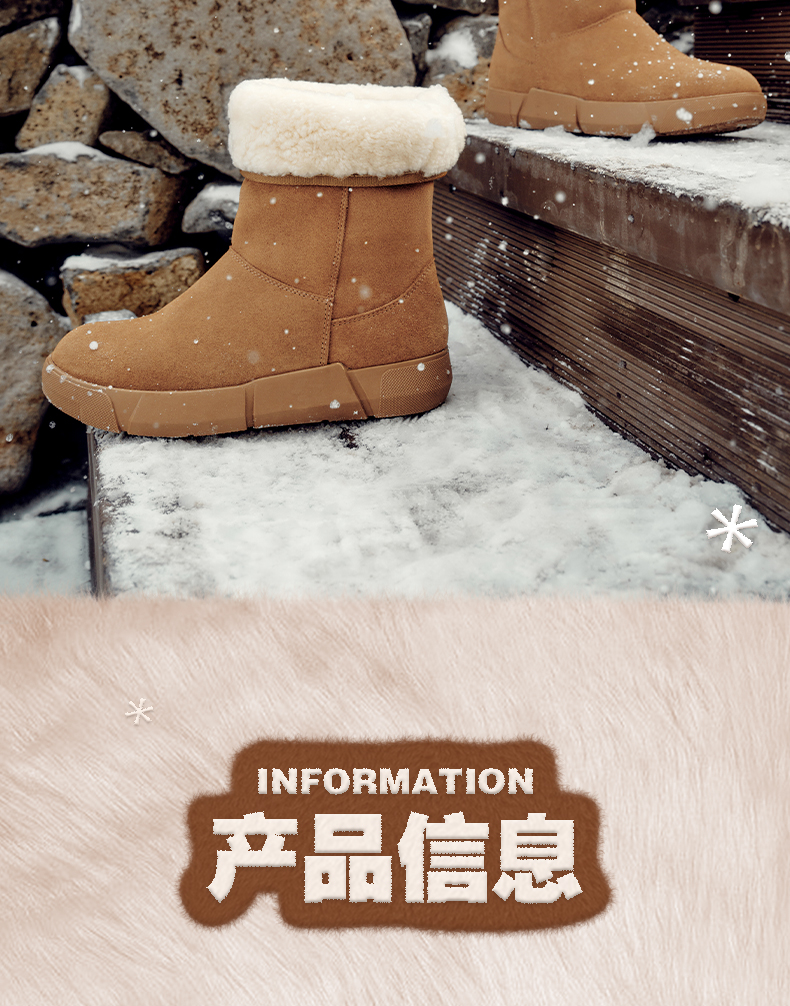 | 靴筒筒面材质:牛剖层皮革 | 里料材质:人造长毛绒羊毛 | 制鞋工艺:胶贴皮鞋 | 鞋垫材质:人造长毛绒 | 款式季节:冬季 |