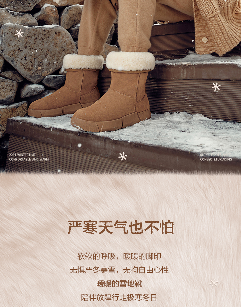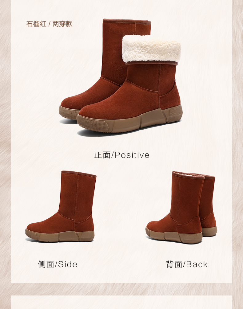 | 鞋底材质:橡胶底 | 靴筒内里材质:人造长毛绒羊毛 | 内增高:无 | 鞋面材质:牛剖层皮革 | 闭合方式:套筒 |