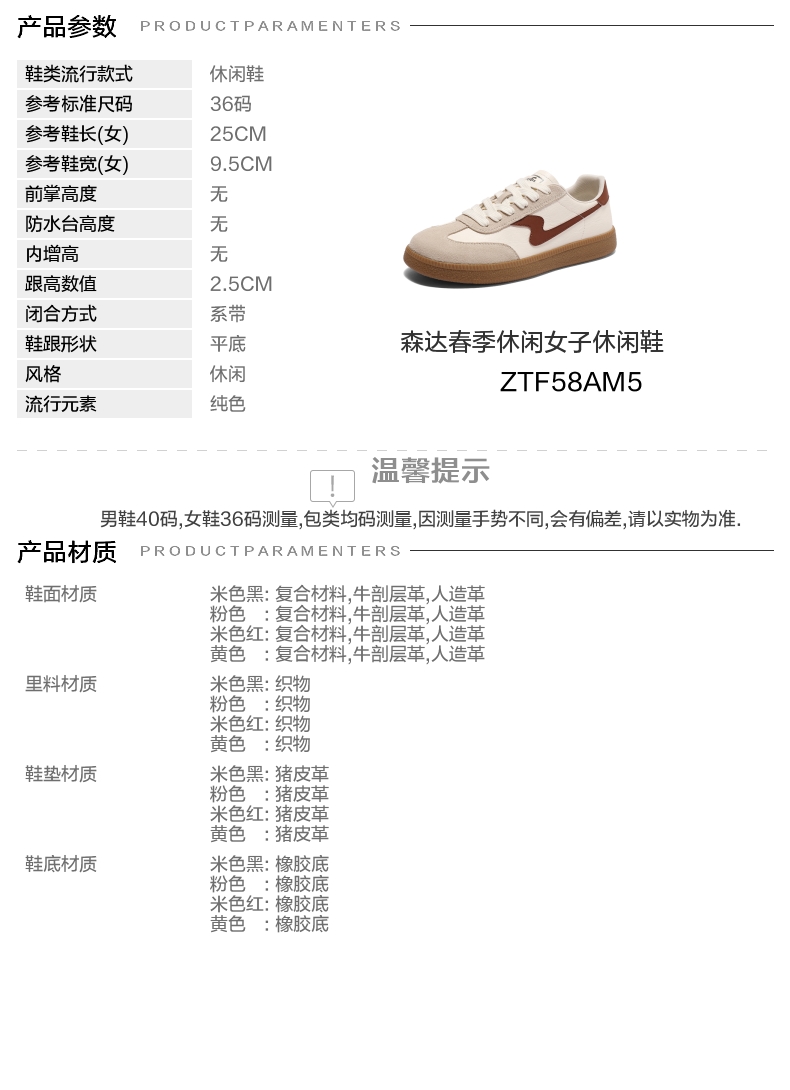 | 参考鞋长(女):25CM | 参考鞋宽(女):9.5CM | 风格:休闲 | 色系:米色 | 参考标准尺码:36码 |
