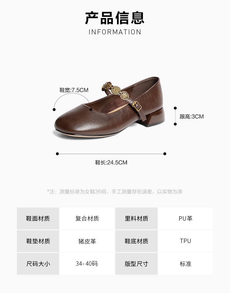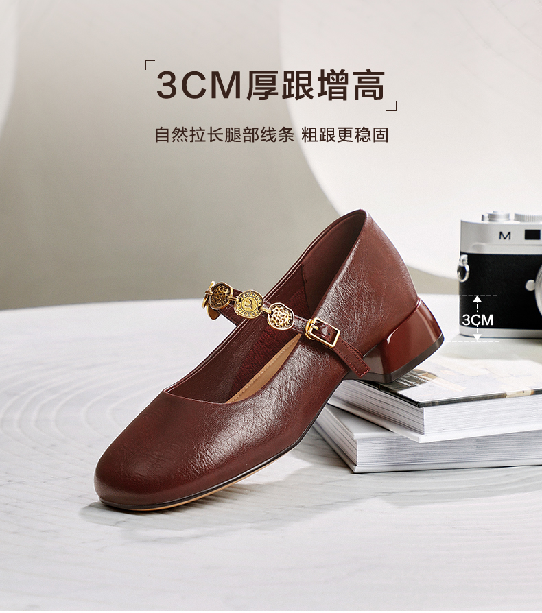 | 鞋头款式:圆头 | 鞋底材质:TPU | 鞋面图案:纯色 | 内增高:无 | 鞋跟形状:粗跟 |