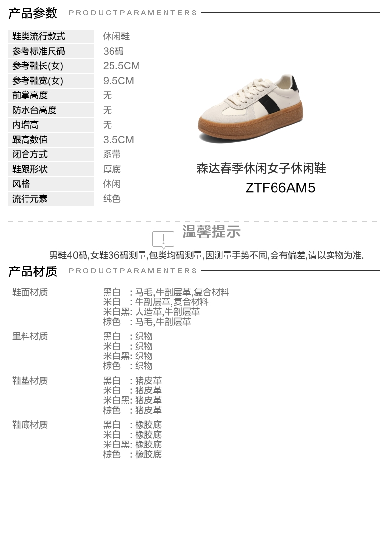 | 鞋跟形状:厚底 | 参考鞋长(女):25.5CM | 流行元素:纯色 | 参考鞋宽(女):9.5CM | 风格:休闲 |