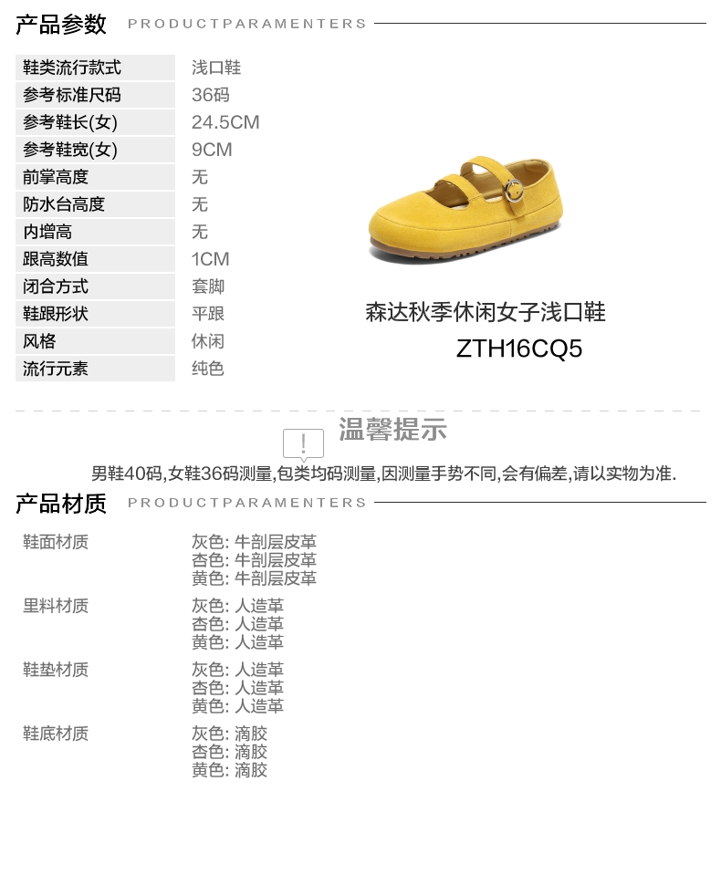 | 风格:休闲 | 跟高数值:1CM | 色系:黄色 | 配跟:无 | 性别:女子 |