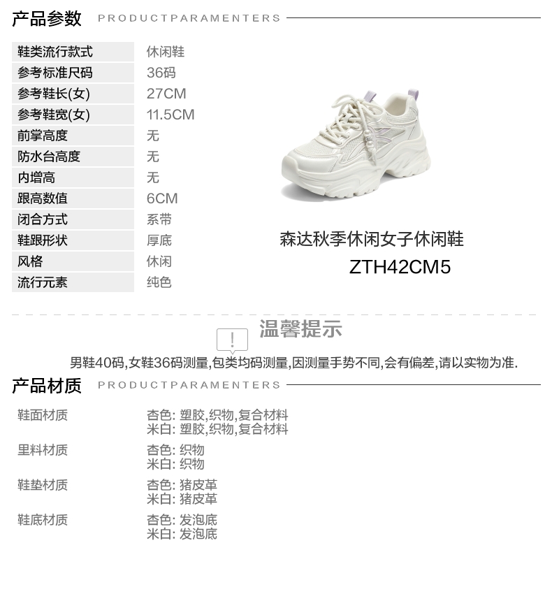 | 鞋跟形状:厚底 | 参考鞋长(女):27CM | 流行元素:纯色 | 参考鞋宽(女):11.5CM | 风格:休闲 |