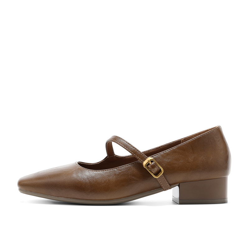 | 鞋头款式:方头 | 鞋底材质:滴塑 | 鞋面图案:纯色 | 内增高:无 | 鞋跟形状:粗跟 |