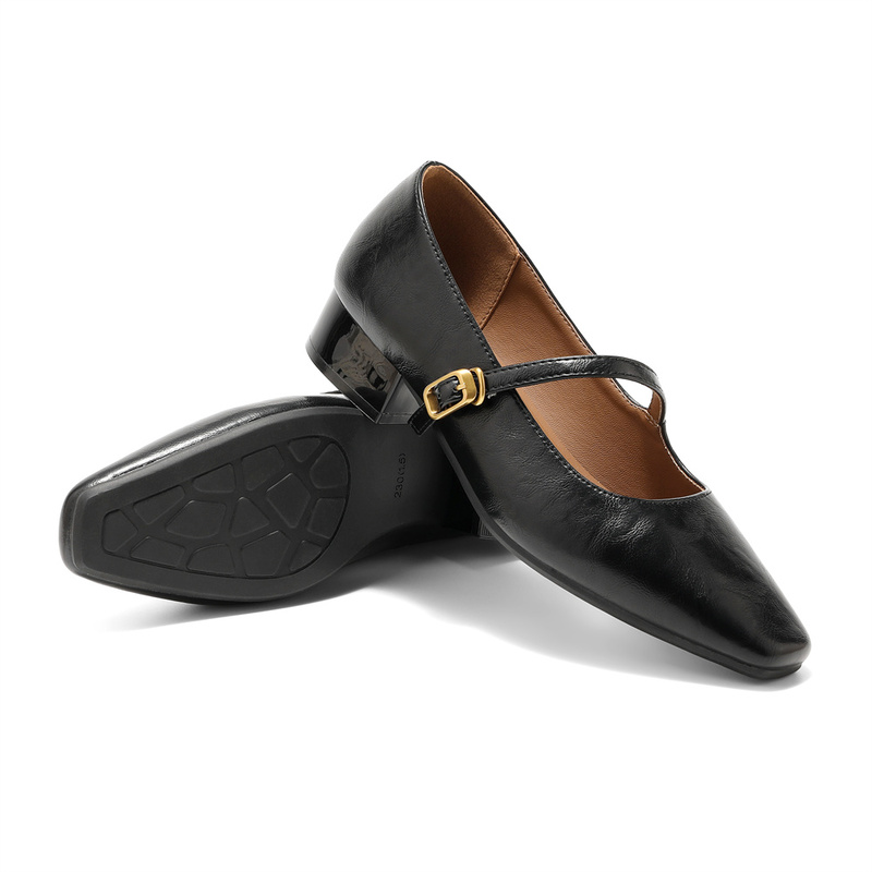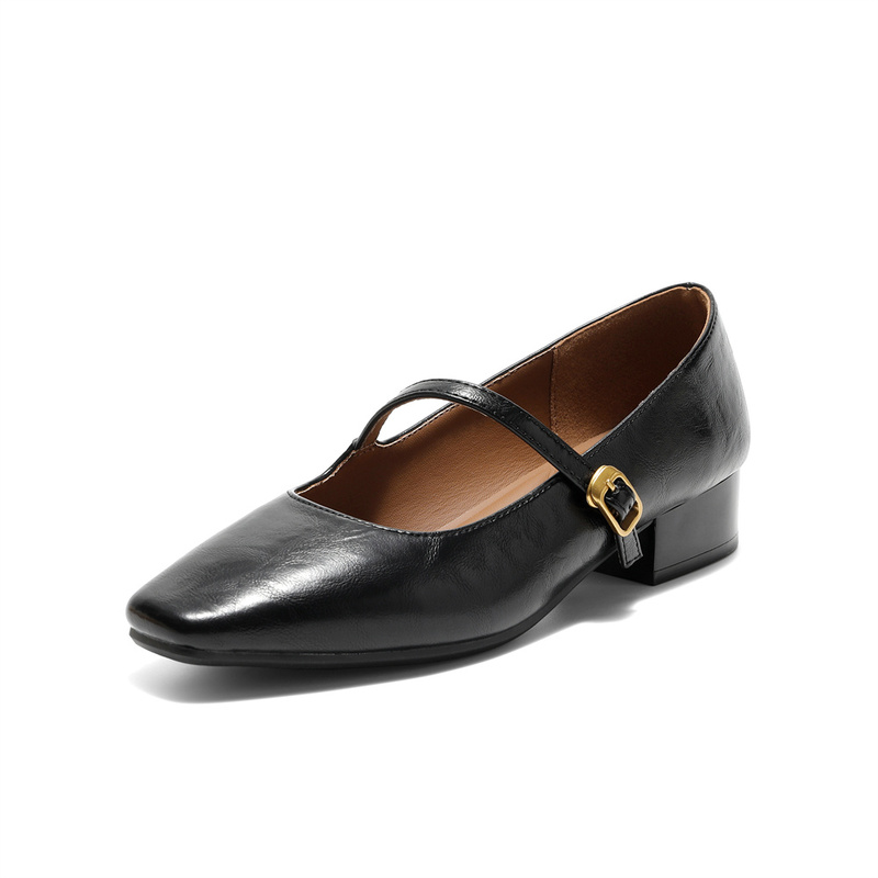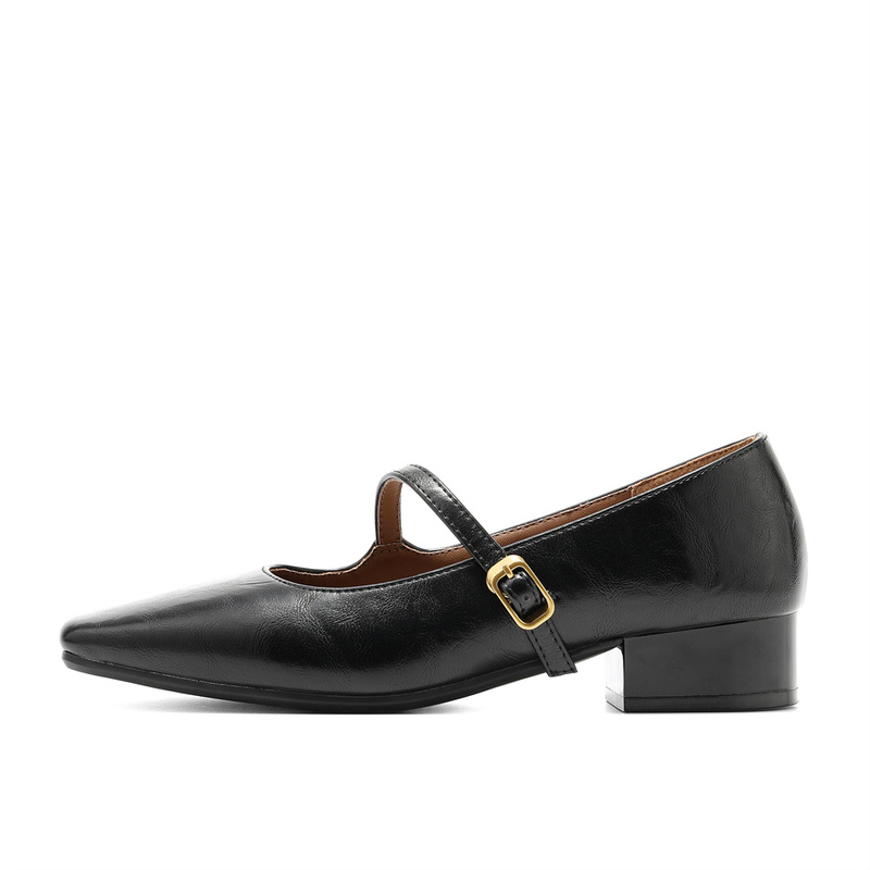 | 鞋头款式:方头 | 鞋底材质:滴塑 | 鞋面图案:纯色 | 内增高:无 | 鞋跟形状:粗跟 |