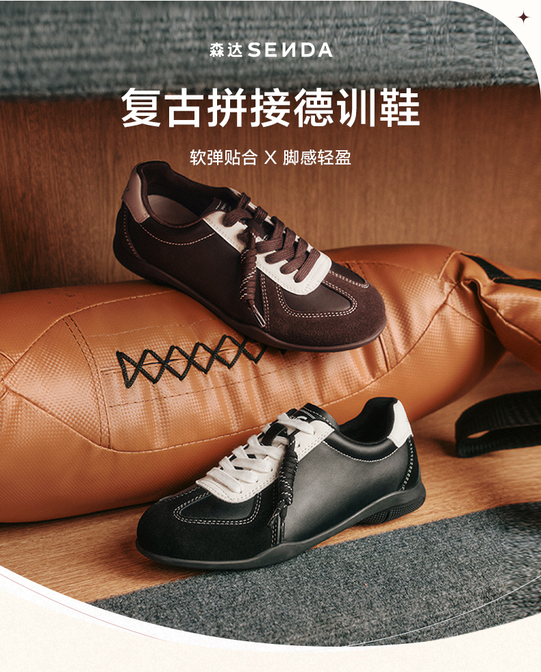 SENDA(森达),品牌成立于1977年,拥有40年发展史,秉承舒适的制鞋理念,从用料到工艺都经过严格质量把控。男鞋以舒适质感著称,覆盖商务正装、商务休闲、时尚休闲三大系列,适用不同场合的需求,同时开发摩克、加州等一系列功能性鞋履,行走体验;女鞋以款式优雅、穿着舒适为主要特征,依时尚潮流添加当季设计元素,每季推出时尚、休闲等系列鞋款,为都市白领提供不同场合的搭配需求。目前门店已覆盖近百座城市,数量达1800多家。