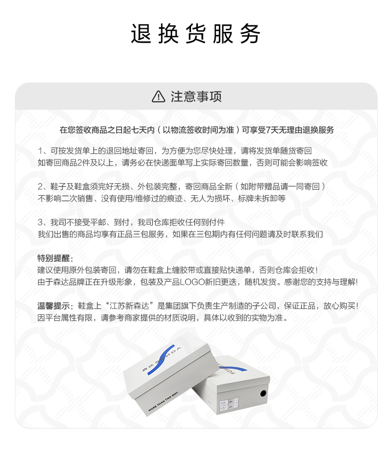 SENDA(森达),品牌成立于1977年,拥有40年发展史,秉承舒适的制鞋理念,从用料到工艺都经过严格质量把控。男鞋以舒适质感著称,覆盖商务正装、商务休闲、时尚休闲三大系列,适用不同场合的需求,同时开发摩克、加州等一系列功能性鞋履,行走体验;女鞋以款式优雅、穿着舒适为主要特征,依时尚潮流添加当季设计元素,每季推出时尚、休闲等系列鞋款,为都市白领提供不同场合的搭配需求。目前门店已覆盖近百座城市,数量达1800多家。