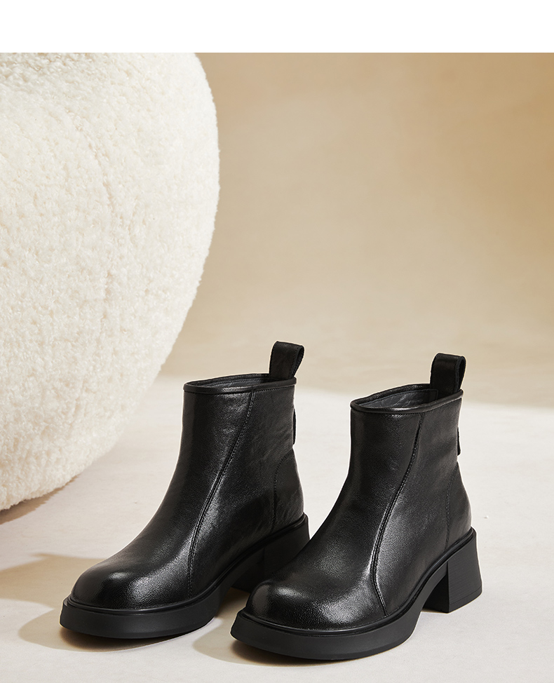 | 鞋底材质:橡胶底 | 靴筒内里材质:人造短毛绒 | 内增高:无 | 鞋面材质:羊皮革 | 闭合方式:后拉链 |