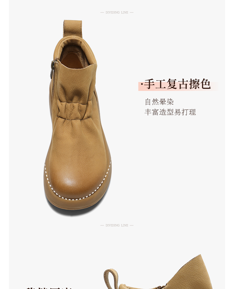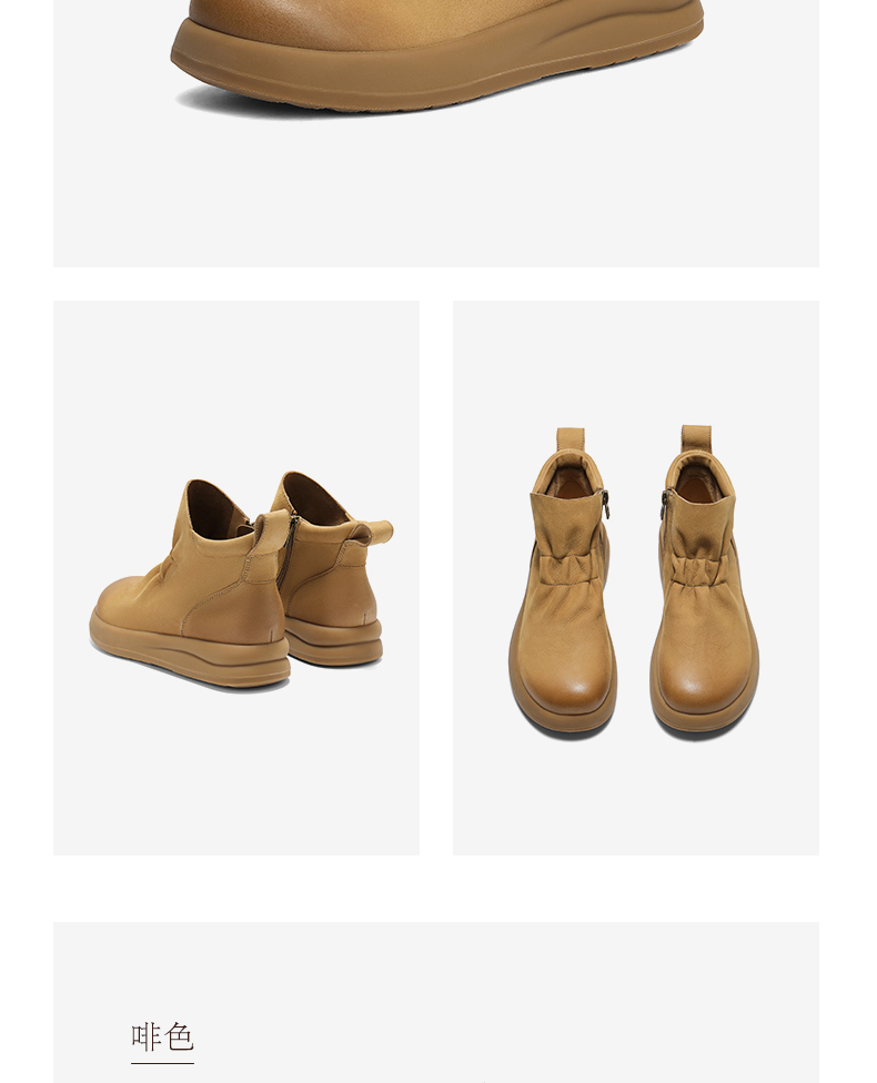 | 帮面材质:牛皮革 | 配跟:无 | 靴筒口围:29.5CM | 上市时间:2025年冬季 | 鞋类流行款式:短靴 |
