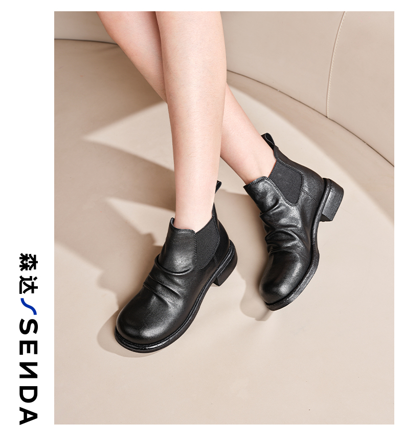 | 帮面材质:牛皮革 | 配跟:无 | 靴筒口围:27CM | 上市时间:2025年冬季 | 鞋类流行款式:短靴 |