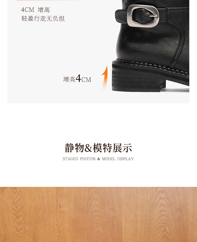 | 风格:休闲 | 色系:黑色 | 跟高数值:4CM | 性别:女子 | 筒高数值:20.5CM |