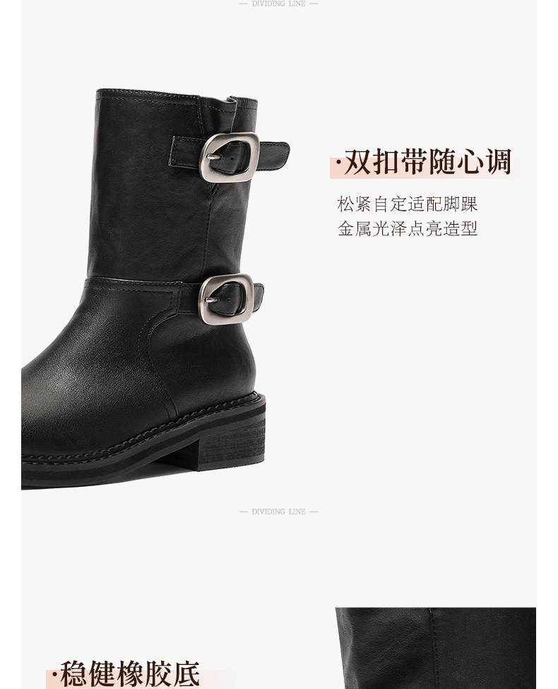 | 配跟:无 | 靴筒口围:32CM | 上市时间:2025年冬季 | 鞋类流行款式:中靴 | 鞋头款式:圆头 |