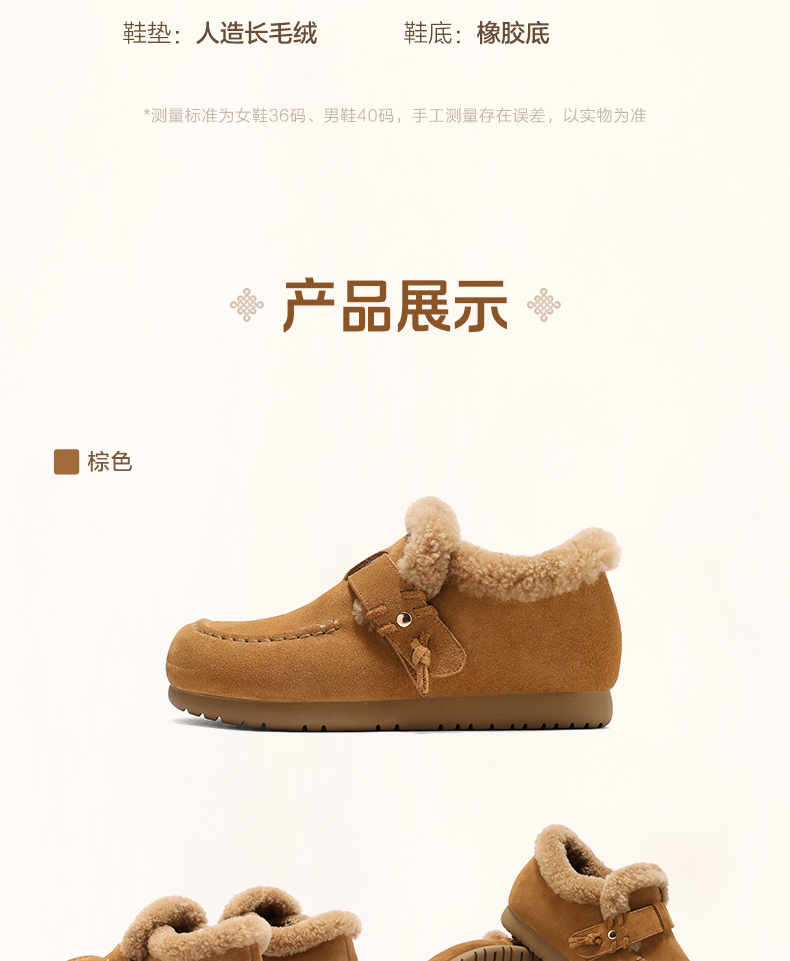 | 色系:棕色 | 跟高数值:2CM | 性别:女子 | 里料材质:羊毛人造长毛绒 | 制鞋工艺:胶贴皮鞋 |