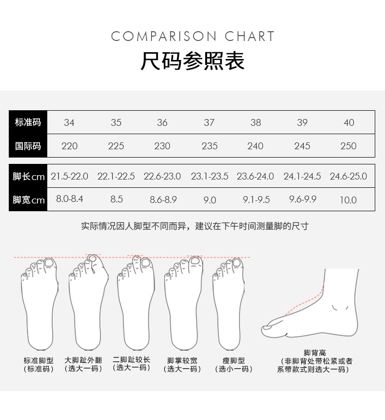 | 参考鞋长(女):23CM | 参考鞋宽(女):8.5CM | 风格:OL通勤 | 色系:黑色 | 参考标准尺码:36码 |