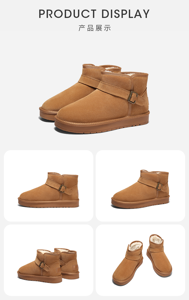 | 里料材质:人造长毛绒 | 制鞋工艺:胶贴皮鞋 | 鞋垫材质:人造长毛绒 | 款式季节:冬季 | 皮质特征:二层皮 |