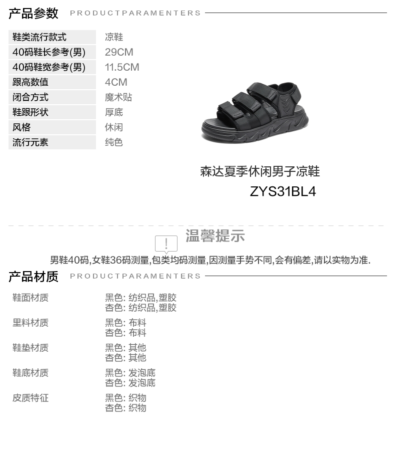 | 跟高数值:4CM | 40码鞋宽参考(男):11.5CM | 性别:男子 | 里料材质:布料 | 上市时间:2024年夏季 |