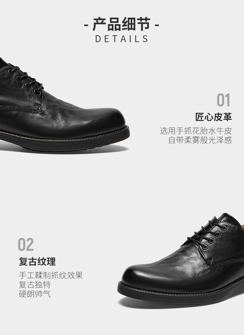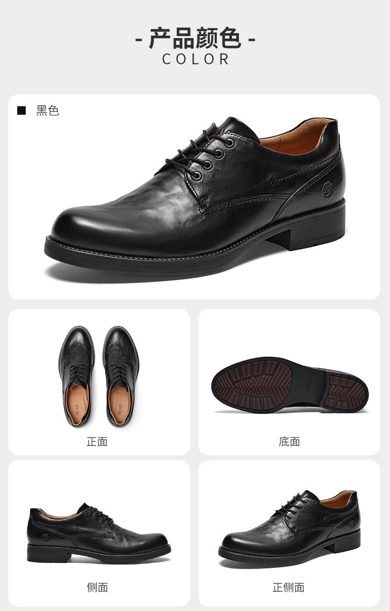 | 鞋跟形状:平跟 | 鞋面材质:牛皮革 | 流行元素:车缝线 | 闭合方式:系带 | 风格:商务正装 |