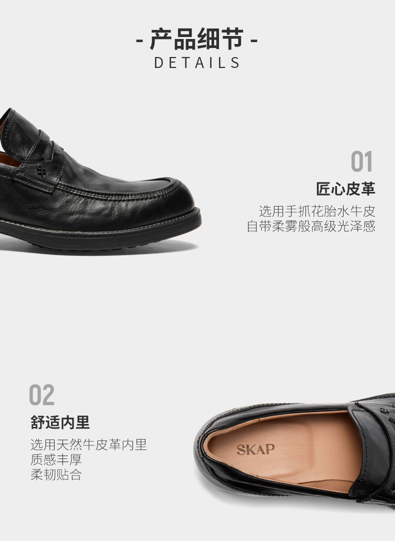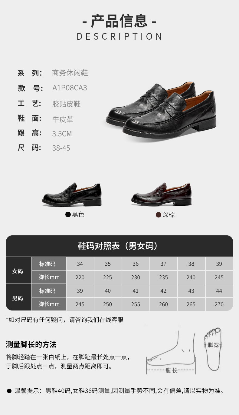 | 闭合方式:套脚 | 所在区域:电子商务 | 40码鞋宽参考(男):11CM | 开口深度:中口 | 风格分类:休闲皮鞋 |
