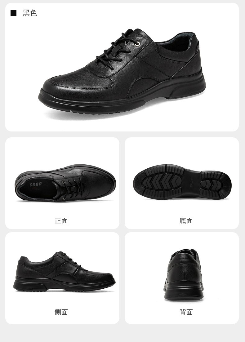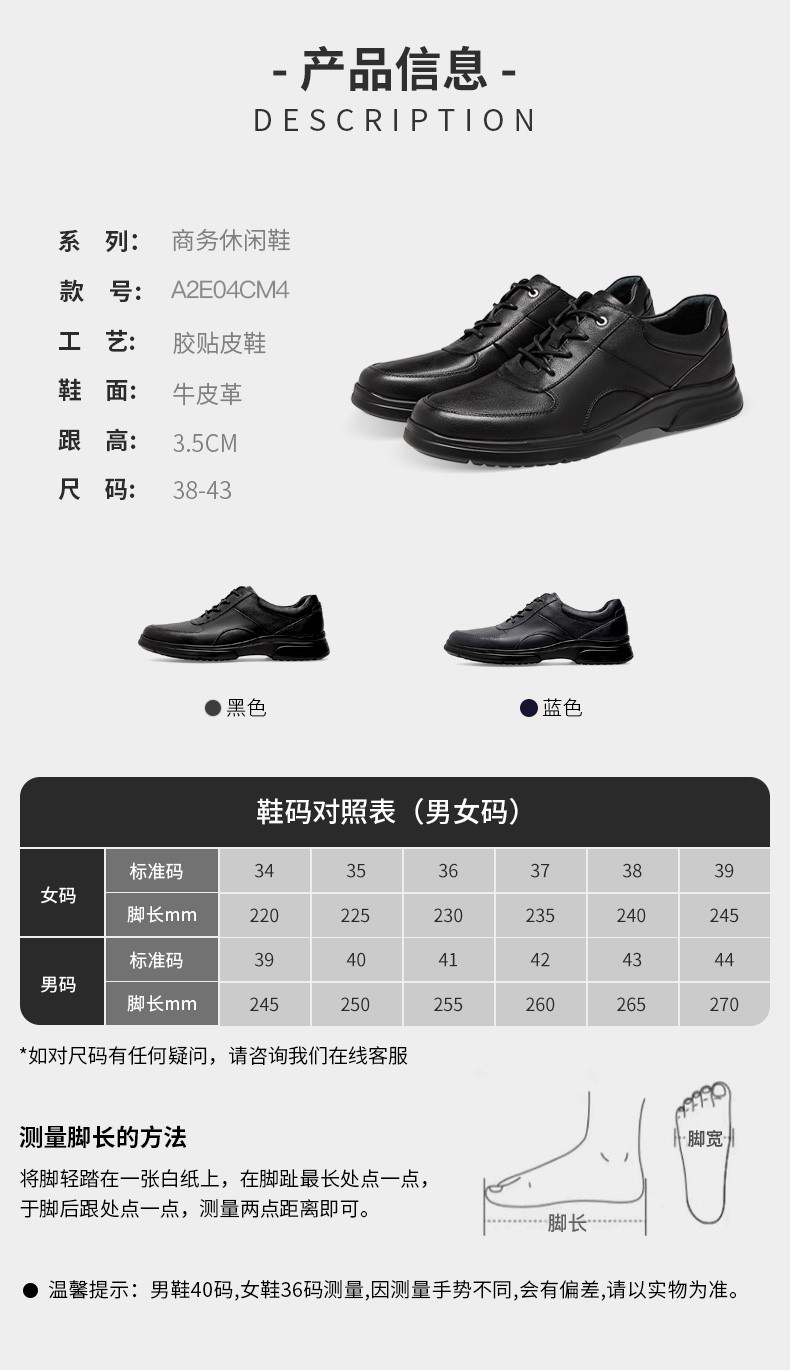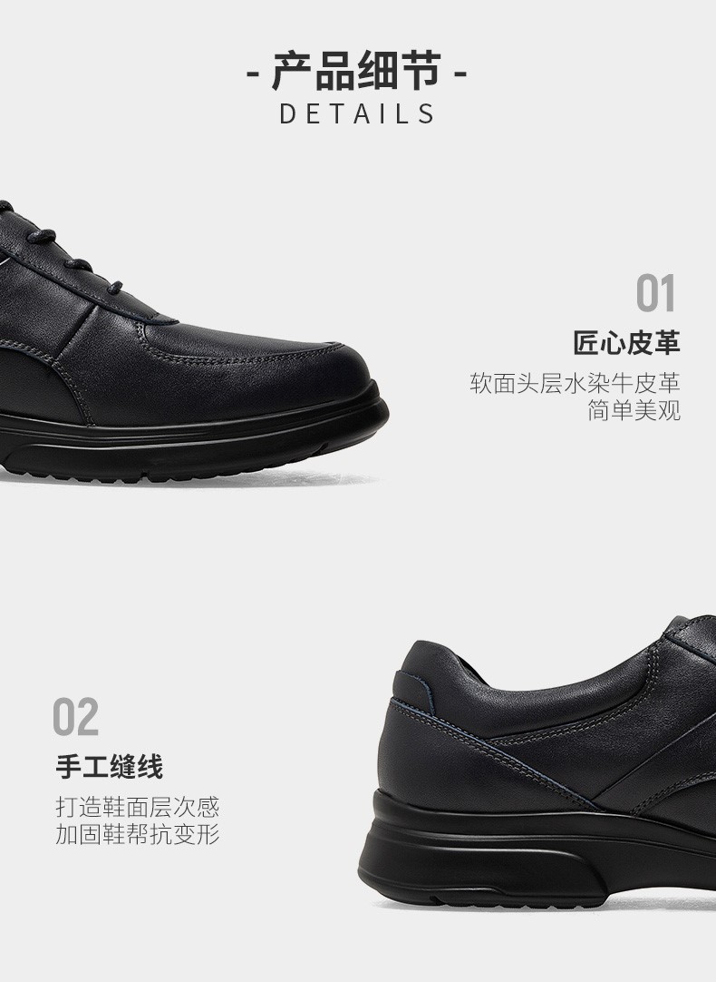 | 风格:商务休闲 | 色系:黑色 | 跟高数值:3CM | 40码鞋宽参考(男):11CM | 性别:男子 |