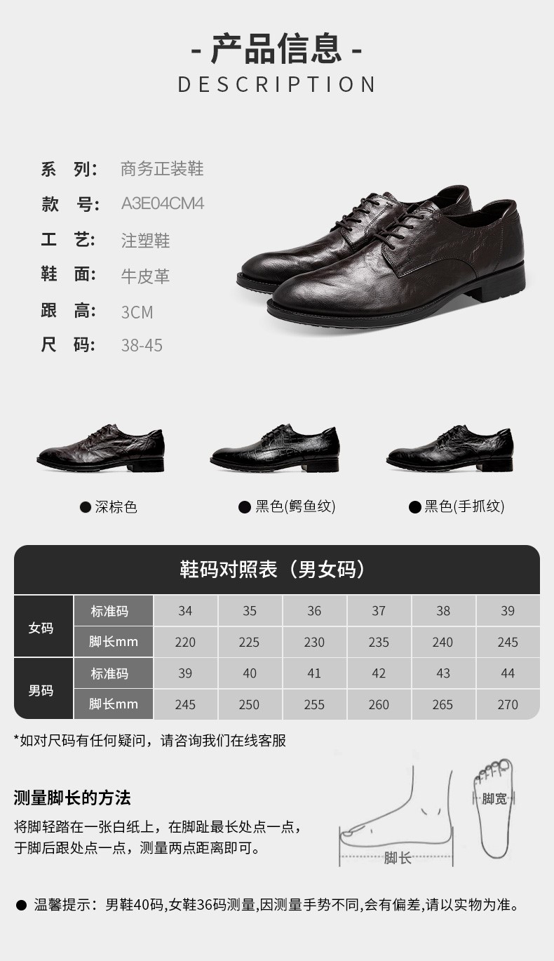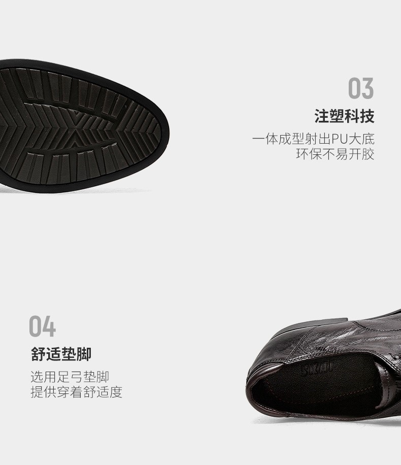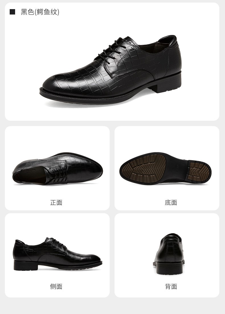 | 风格:商务 | 色系:黑色 | 跟高数值:3CM | 40码鞋宽参考(男):11CM | 性别:男子 |