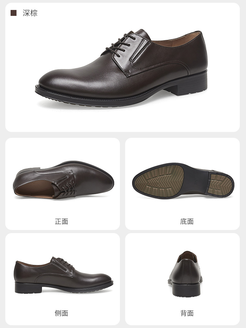 | 风格:商务正装 | 色系:棕色 | 跟高数值:3CM | 40码鞋宽参考(男):11CM | 性别:男子 |