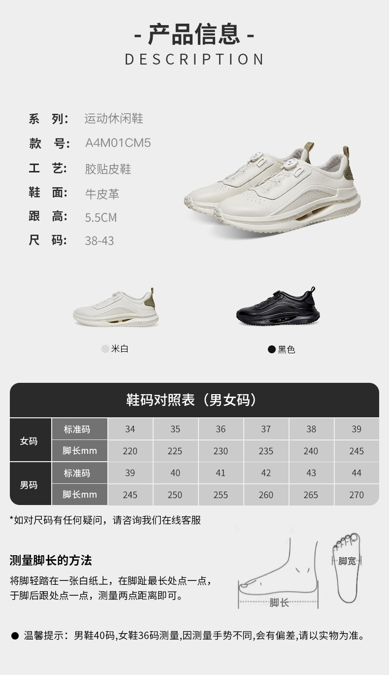 | 风格:运动风 | 色系:米色 | 跟高数值:5.5CM | 40码鞋宽参考(男):12CM | 性别:男子 |