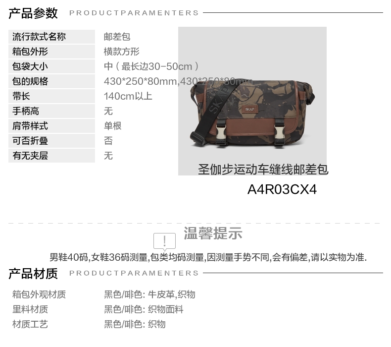 | 肩带样式:单根 | 手柄:无 | 带长:140cm以上 | 流行元素:车缝线 | 可否折叠:否 |