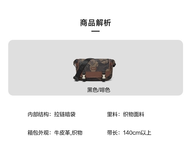 | 色系:啡色 | 适用场景:运动 | 开袋方式:包盖式 | 性别:男 | 里料材质:织物面料 |