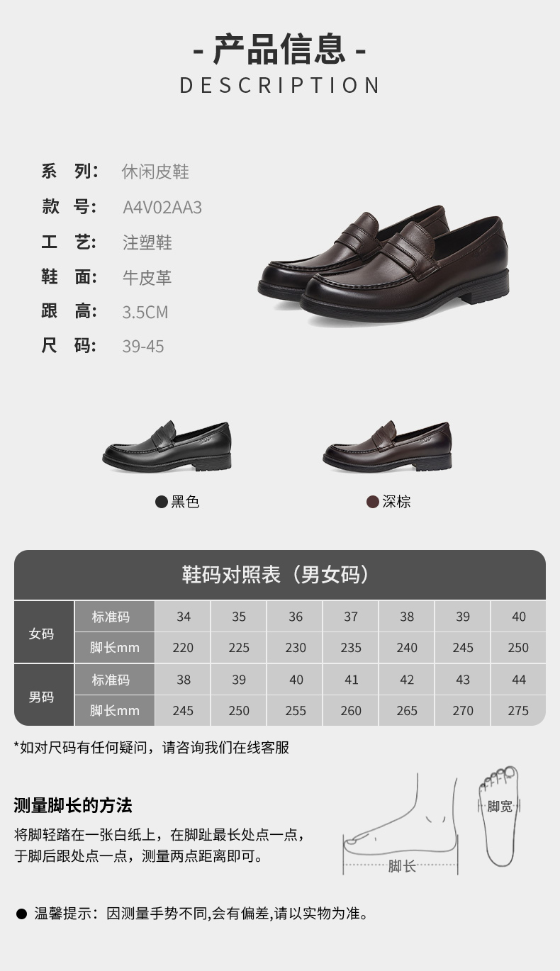 | 风格:商务休闲 | 色系:棕色 | 跟高数值:3.5CM | 40码鞋宽参考(男):11CM | 性别:男子 |