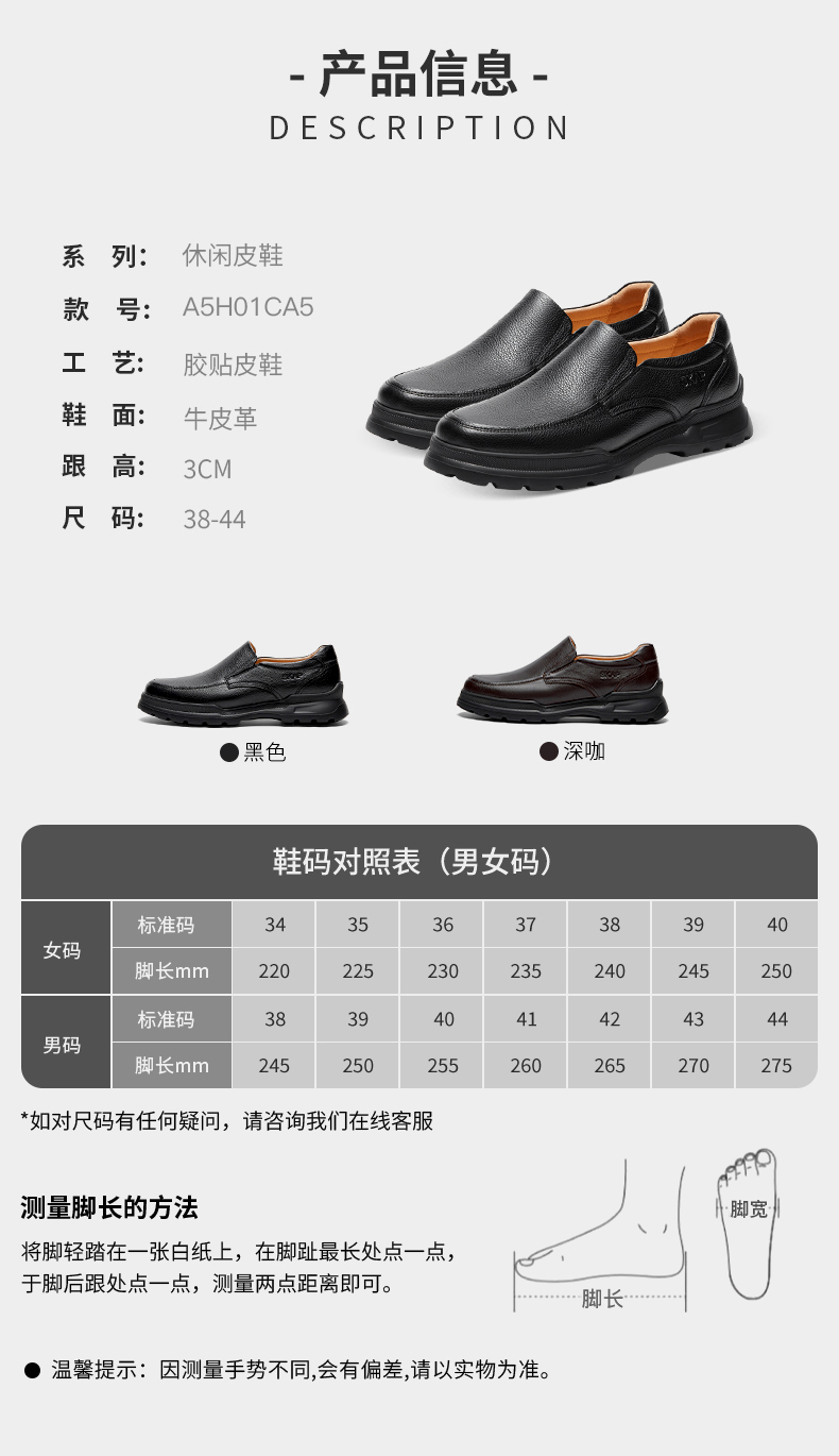 | 风格:商务休闲 | 色系:黑色 | 跟高数值:3CM | 40码鞋宽参考(男):12CM | 性别:男子 |