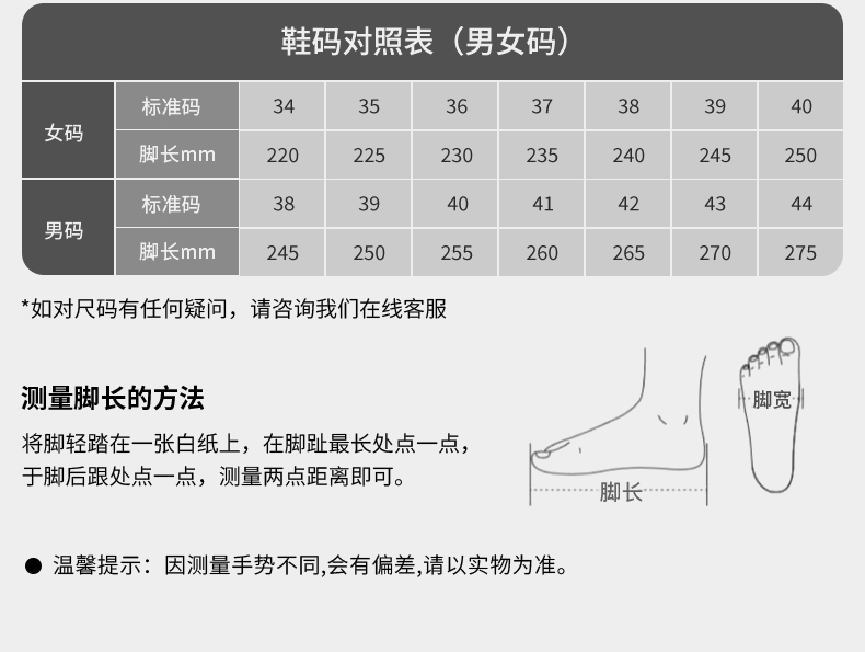 | 法国码 | 38 | 39 | 40 | 41 | 42 | 43 | 44 |