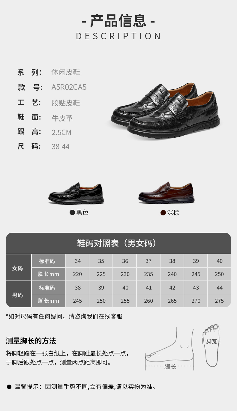 | 风格:简约 | 色系:黑色 | 跟高数值:2.5CM | 40码鞋宽参考(男):11CM | 性别:男子 |