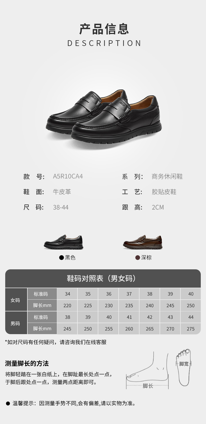| 鞋面材质:牛皮革 | 适用场合:日常休闲 | 闭合方式:套脚 | 所在区域:电子商务 | 40码鞋宽参考(男):10.5CM |
